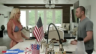 Eye-catching blond cougar Sydney Hail gives her head and gets her vagina nailed
