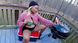 Ebony Amateur Banged Hard Outside On Balcony - Lustery