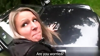 Blonde gets muff cumshot outdoors