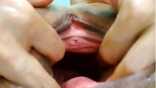 Virginal nympho is gaping juicy beaver in close range and c