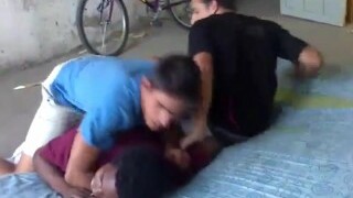 Three freshmen have faggot threesome