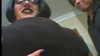 Goth mistress with big mounds rides me on top while friend films
