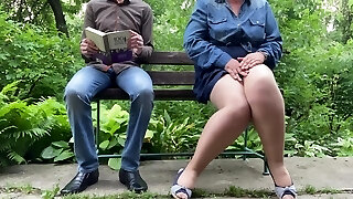 Shameless mature babe exposes her bodacious body in the public park