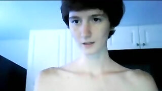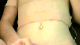 Long haired ebony head with ugly saggy pale tits was masturbating on webcam
