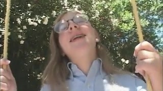 Ugly as hell nerdy old boy eats shaved pussy of buxom cute brunette