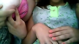 Two Sexy Girls and Three Boys Facial Cumshot on Cam