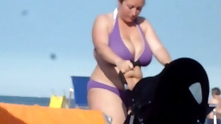 Big-boobed Milf runs around naked at the beach - FTV MILFS