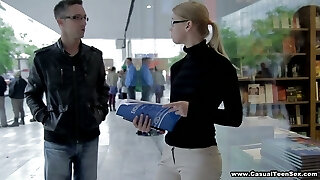 Nerdy coed Gracie May Green seduces one married guy and loves clad sex