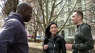 Outdoors MMF threesome with ebony Plumper neighbor Skyy Black. HD