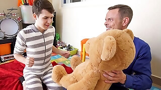 Twink Stepson And Stepdad Family Three Way With Stuffed Bear