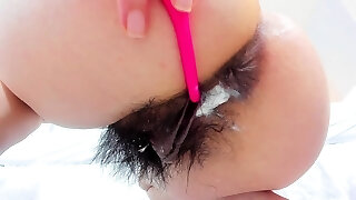Hairy pussy video featuring a Japanese hottie