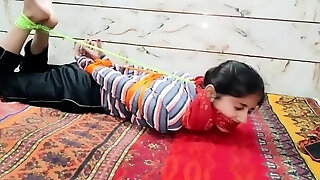 Slim Submissive Indian Teen Gets Her Hands And Feet Trussed Up And Her Hairy Pussy Creampied