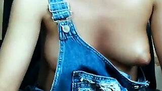 Fledgling brunette demonstrates her ugly tits for the webcam