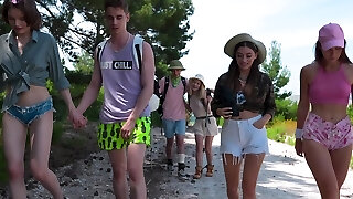 Platinum-blonde And Brunette Teens Have An Outdoor Foursome