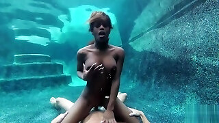 Jenna Starr having fun while fellating a black fuck-stick in the pool