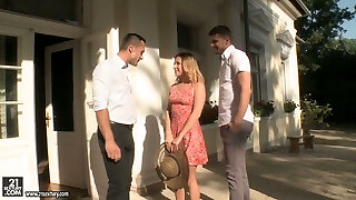 Luscious young German blonde Helena Moeller takes part in duo threesome intercourse