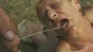 Lesbian facesitting with hairy BBW granny and lovely blonde nubile