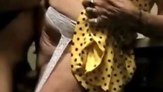 Ugly old bitch gets her immensely hairy butthole boned hard on sofa