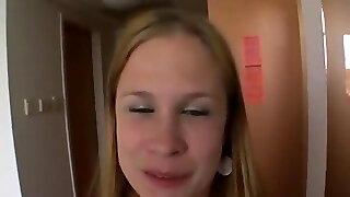 Ugly blond woman sucks a strong hot jizz-shotgun for sticky spunk right in the hall