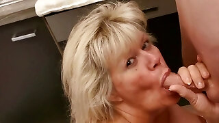 Gross fat and nerdy blonde mature slut sucks heavy dick and gets banged