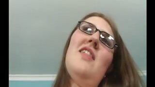 Gross dark haired hoe in glasses gets her throat gangbanged hard