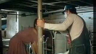 Horny retro couple enjoy some naughty banging in a warehouse