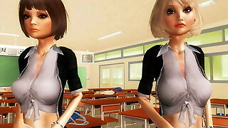 女孩与大胸部变得巨大的鸡鸡